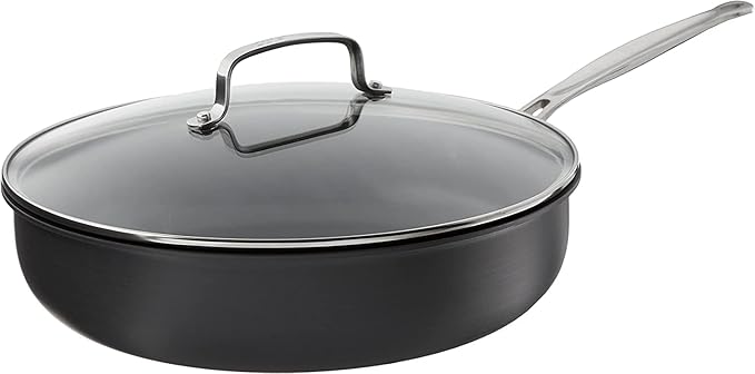 Cuisinart 12-Inch Deep Fry Pan w/cove is reliable and non-stick. It performs well as thousands and thousands of dollars’ worth of pans that people have been buying.